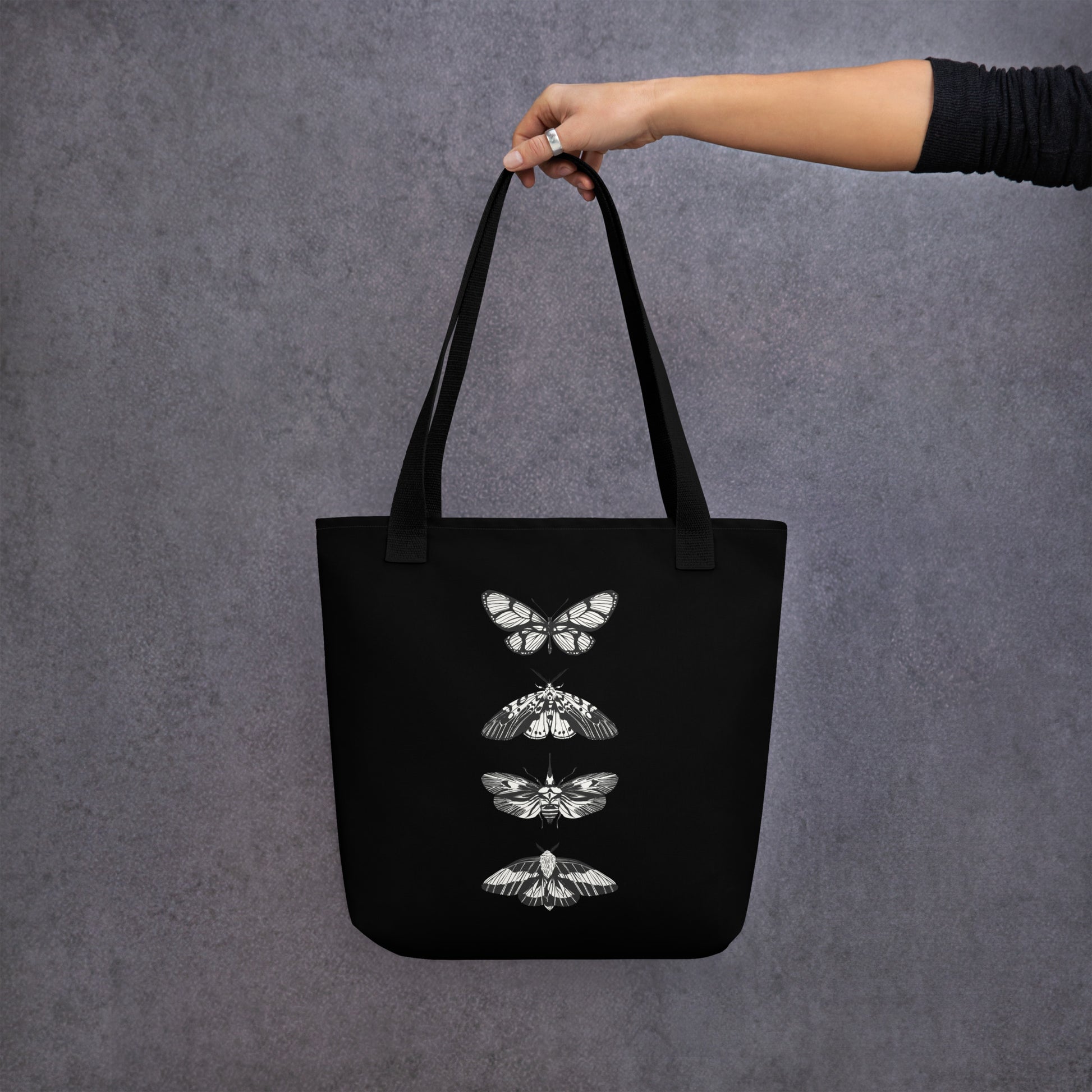 B&W MOTHS TOTE BAG