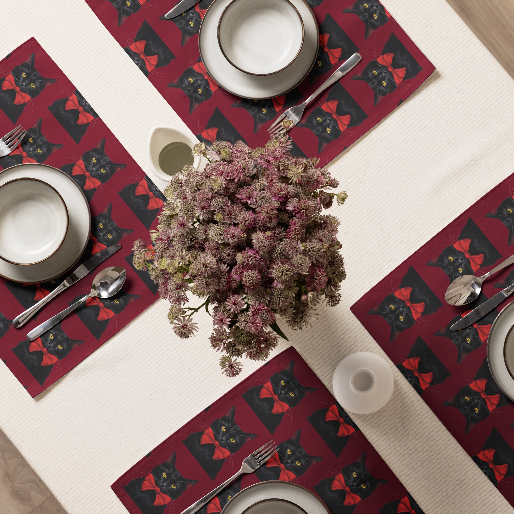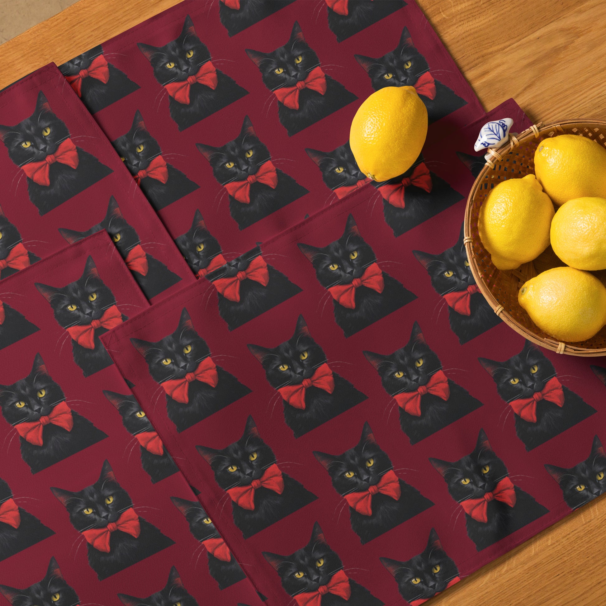 BLACK KITTY BOW B PLACEMAT SET