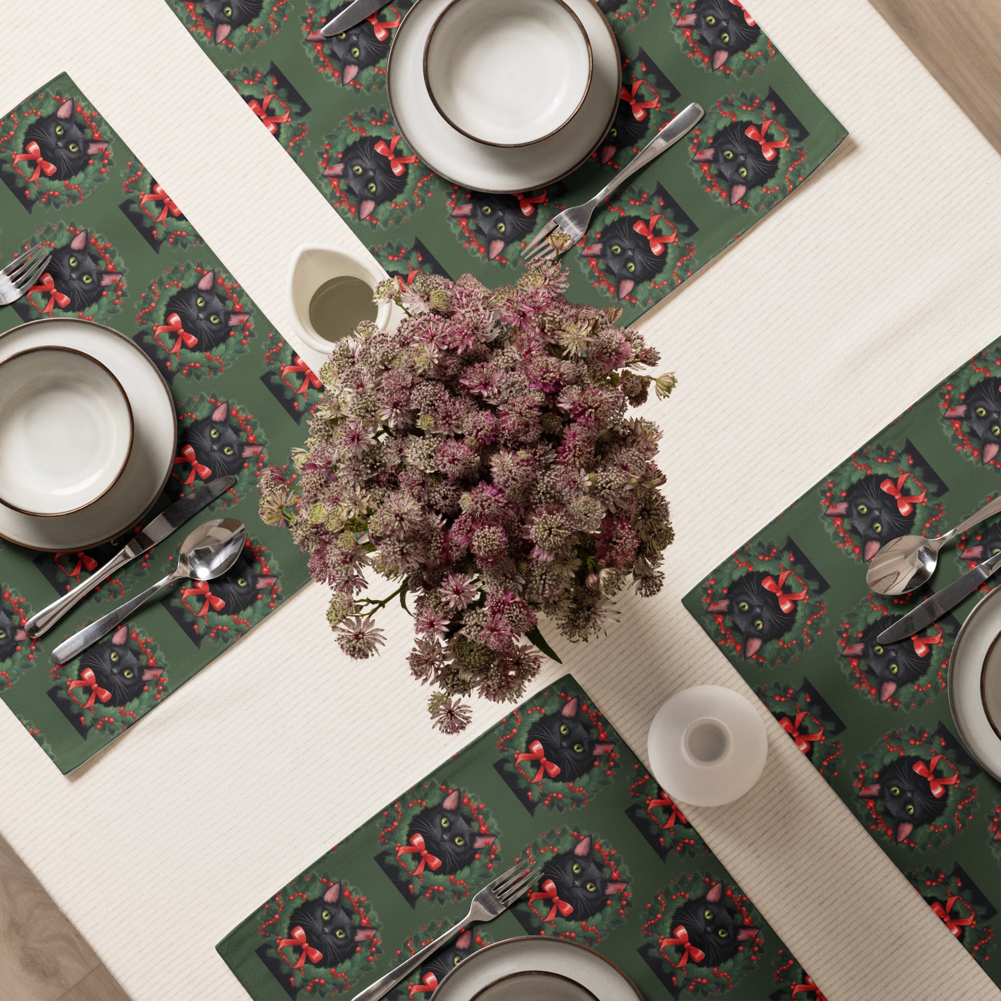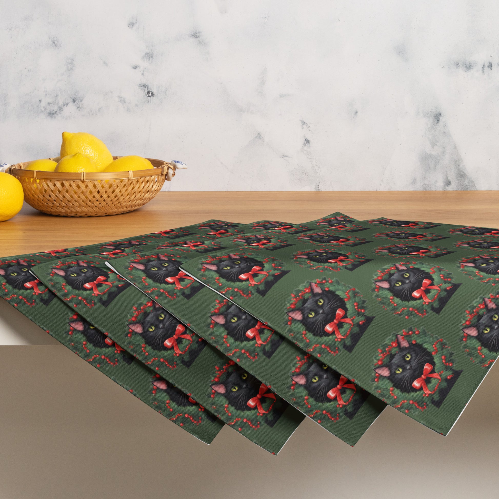 BLACK KITTY WREATH B PLACEMAT SET