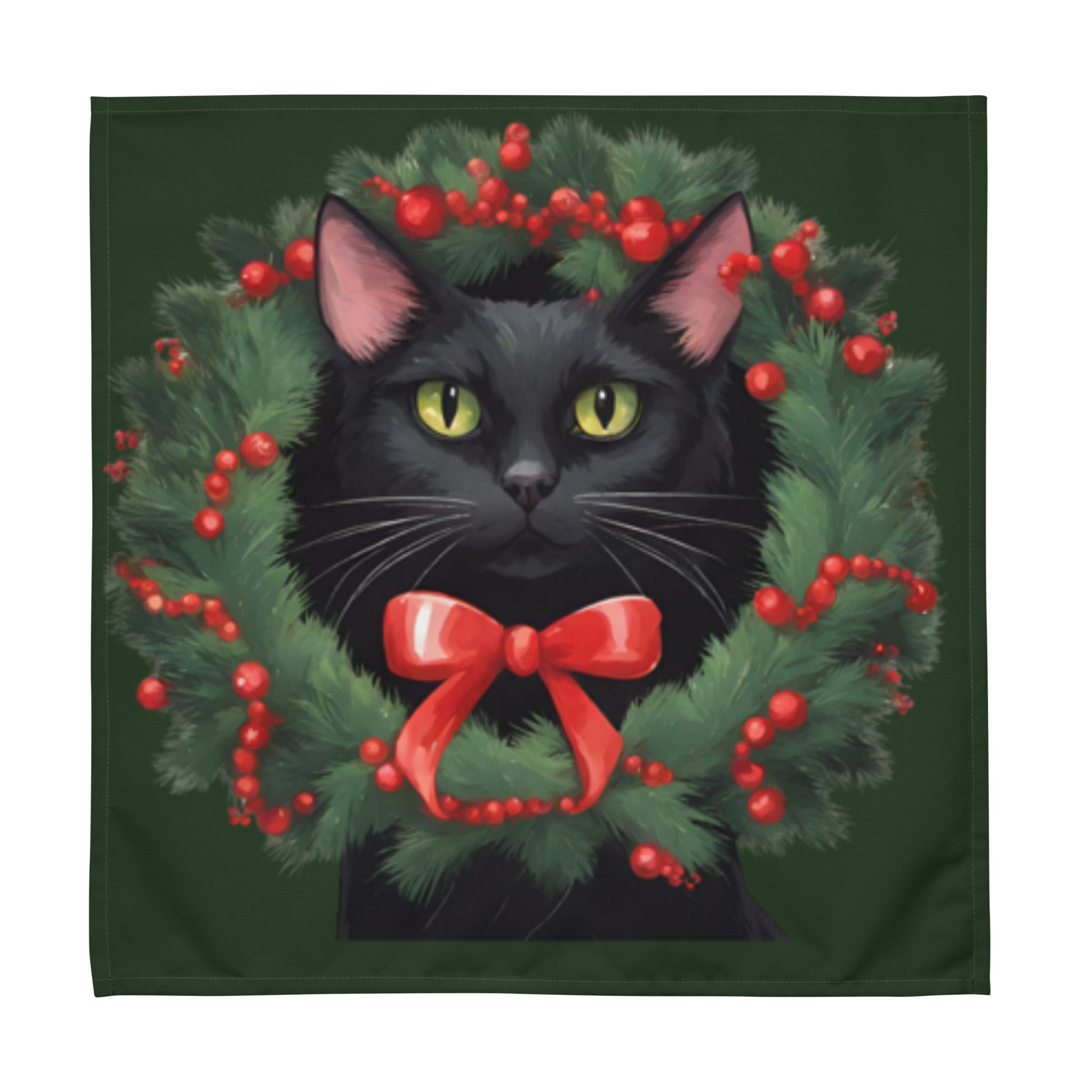 BLACK KITTY WREATH CLOTH NAPKIN SET