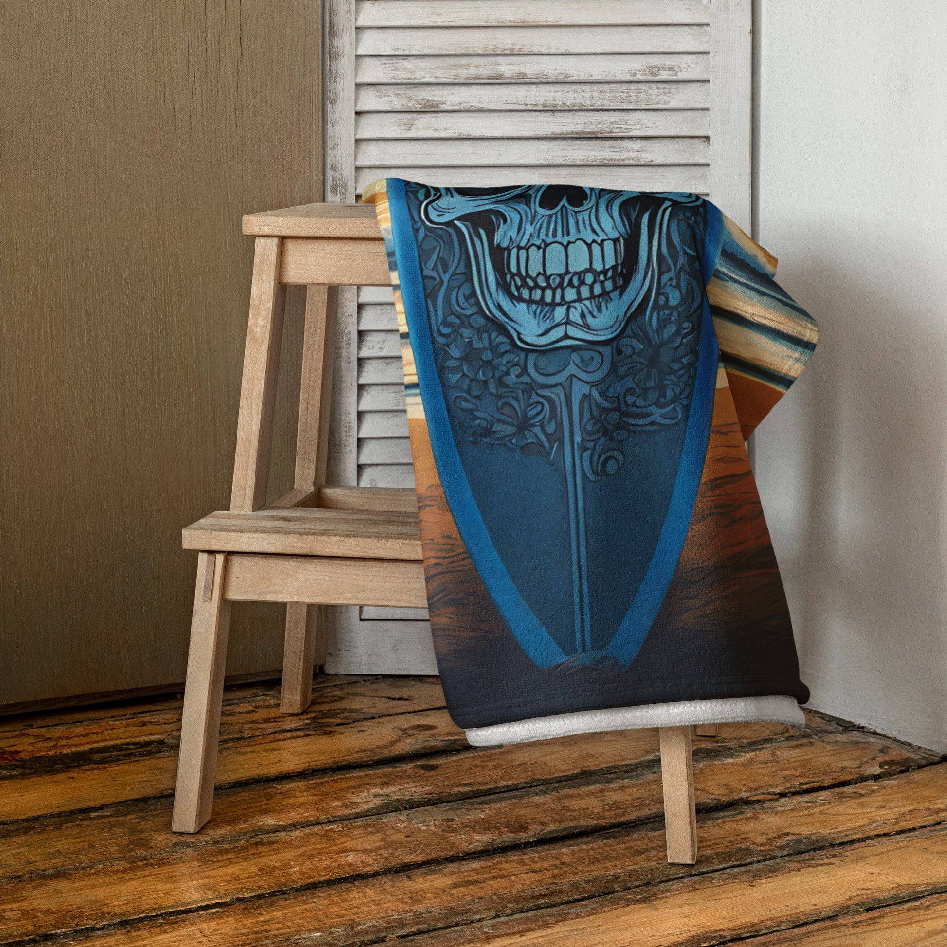 BLUE SKULL SURFBOARD BEACH TOWEL