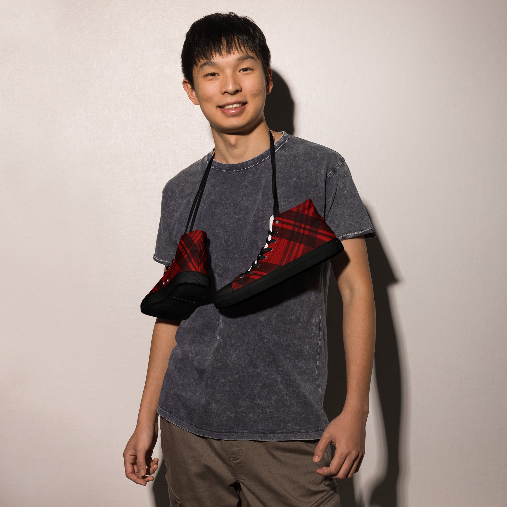 MEN'S RED PLAID HIGH TOP CANVAS SHOES