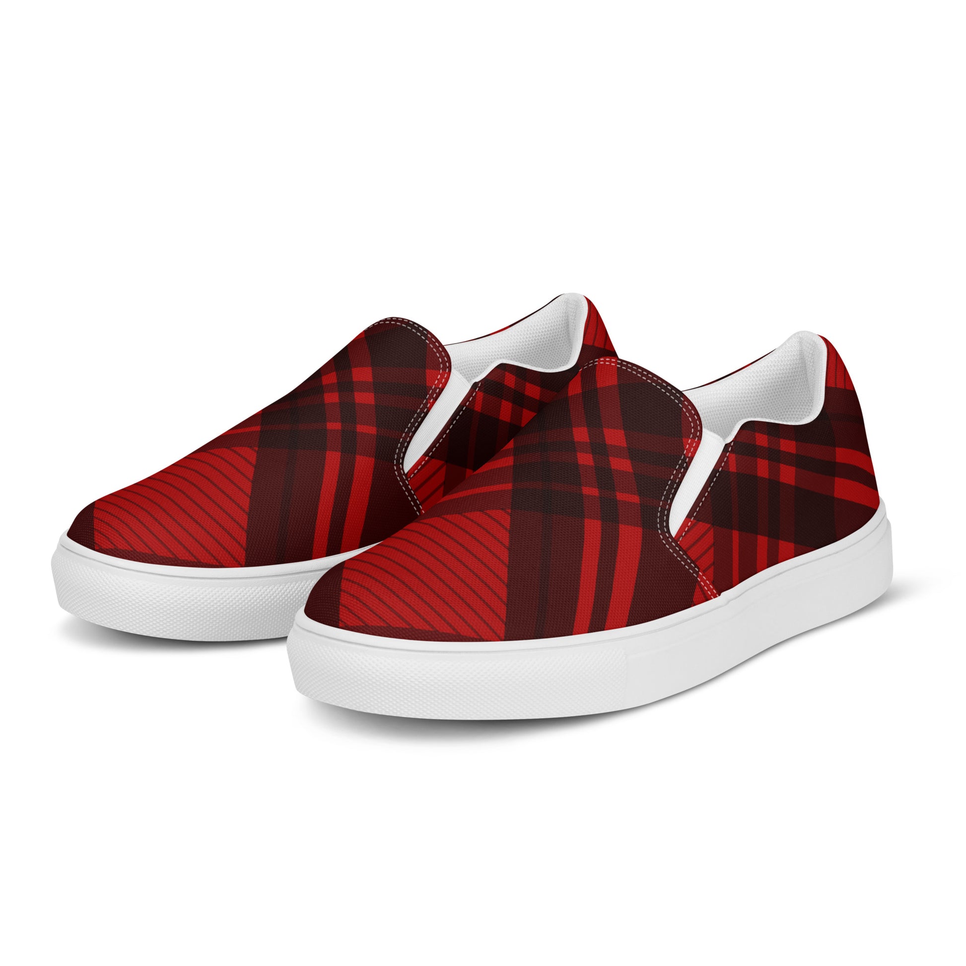 MEN'S RED PLAID SLIP-ON CANVAS SHOES