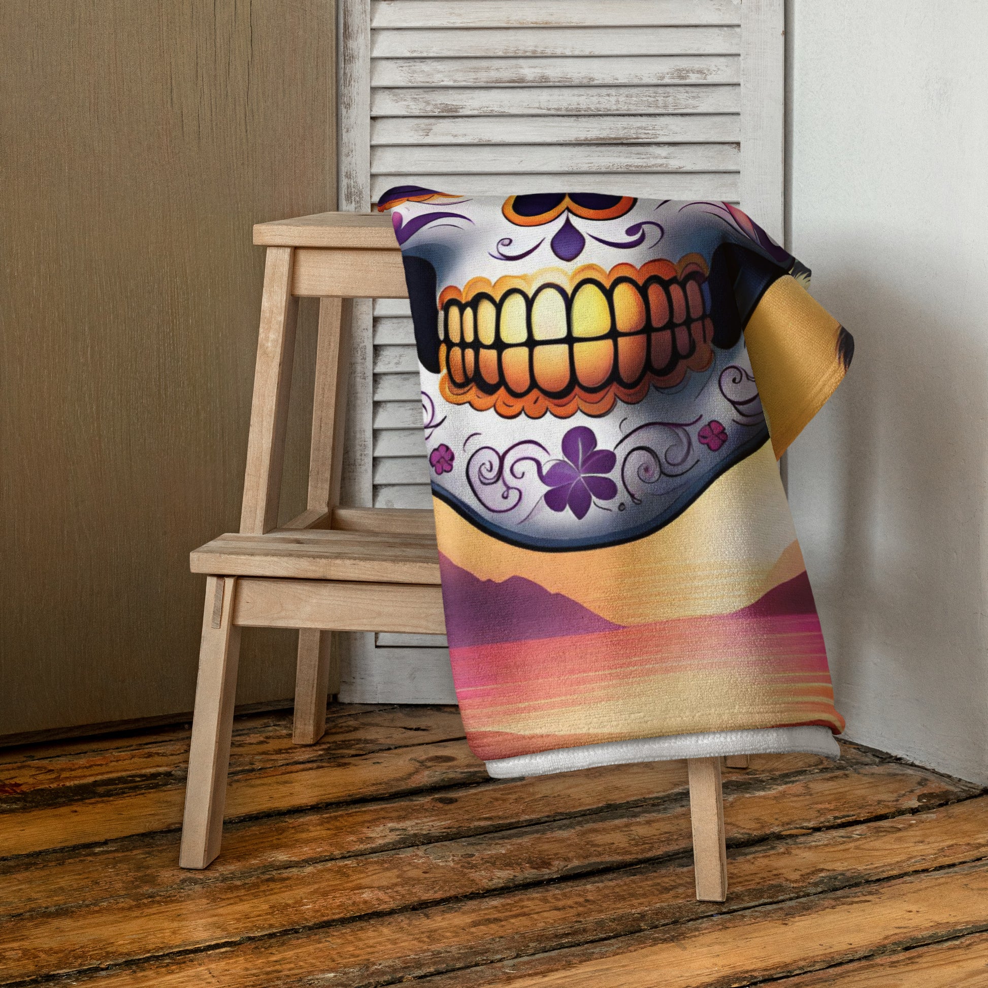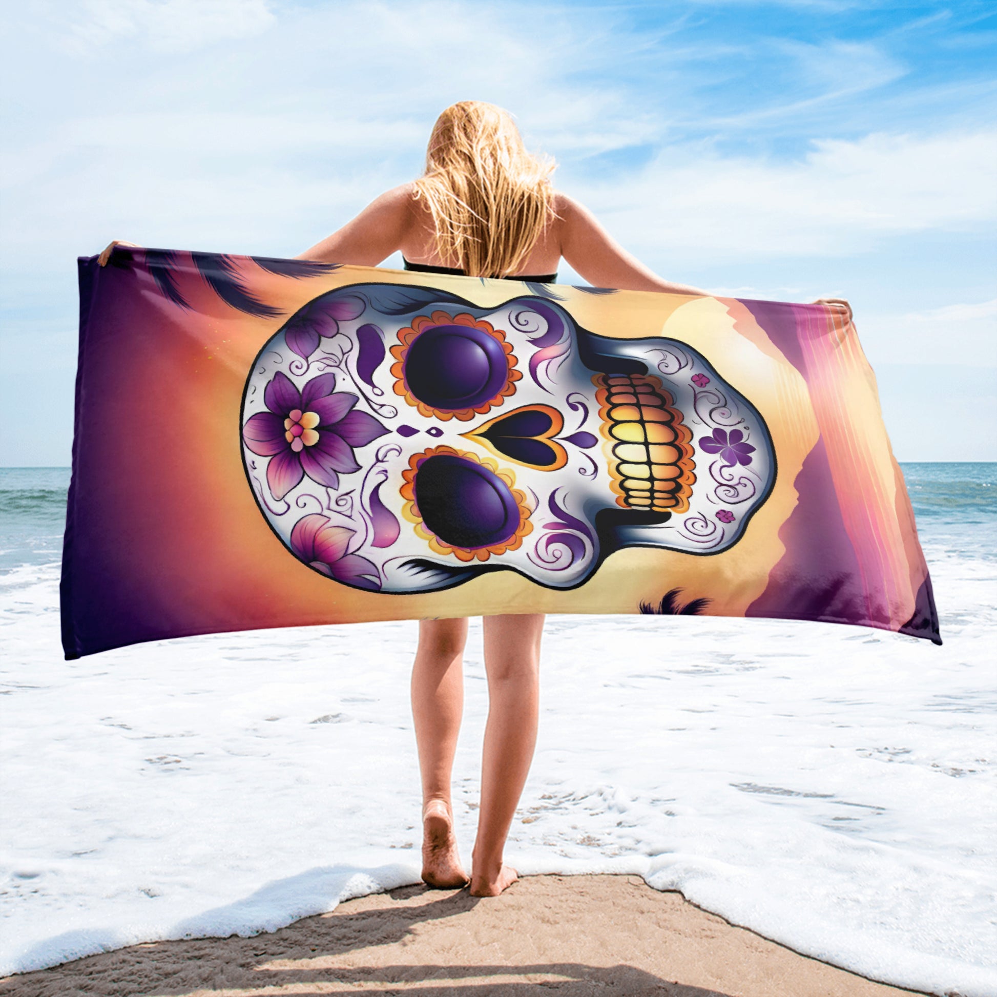 PINK SUNSET SKULL BEACH TOWEL