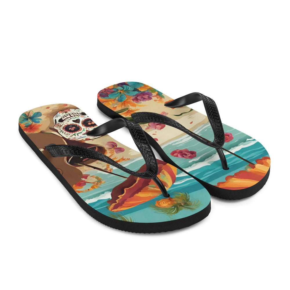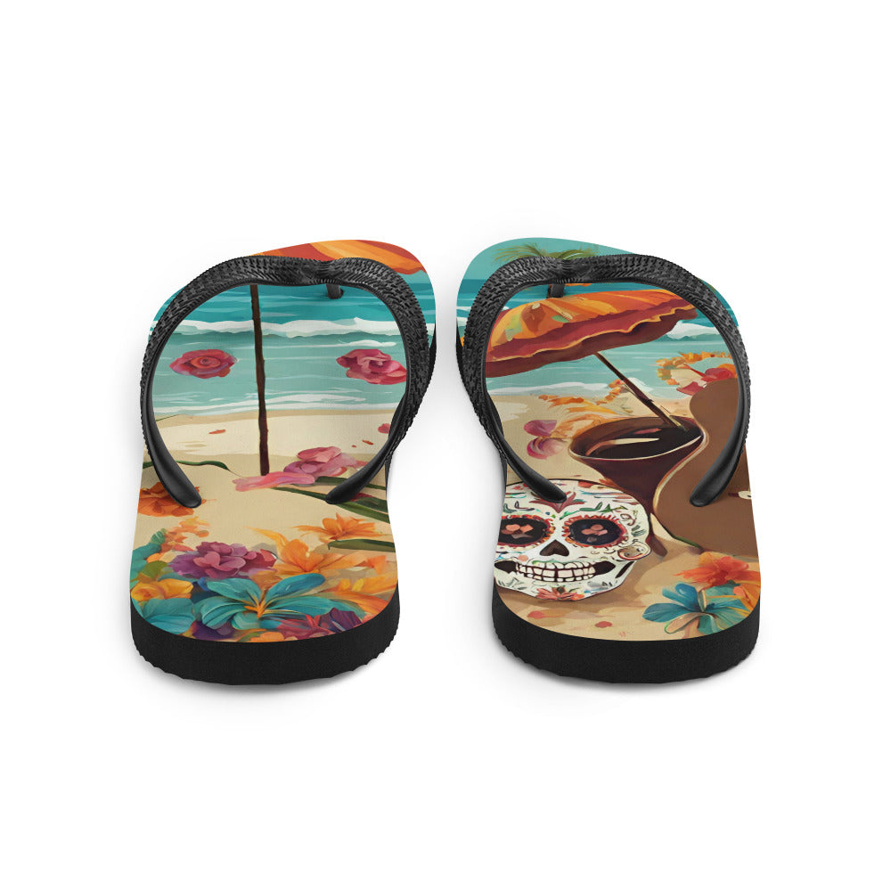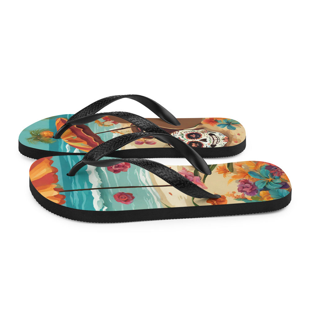 SUGAR SKULL ON THE SAND FLIP-FLOPS