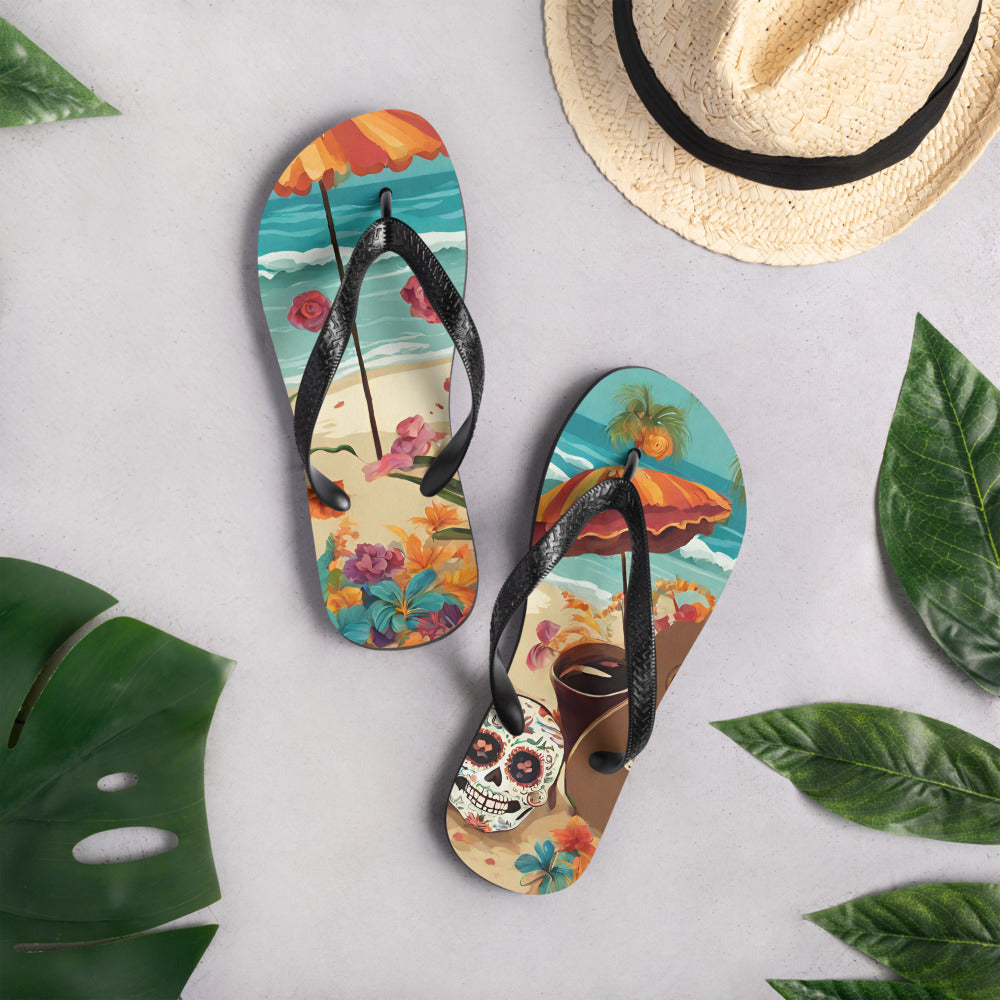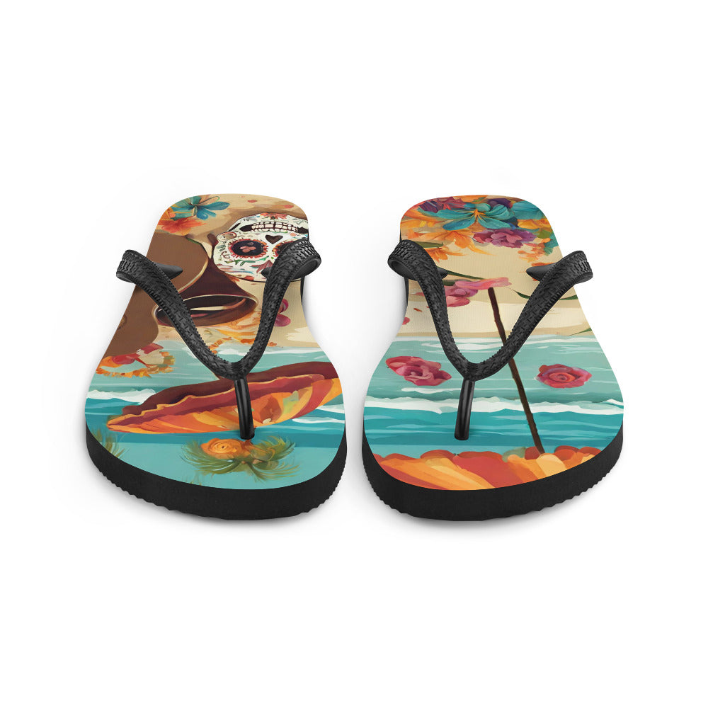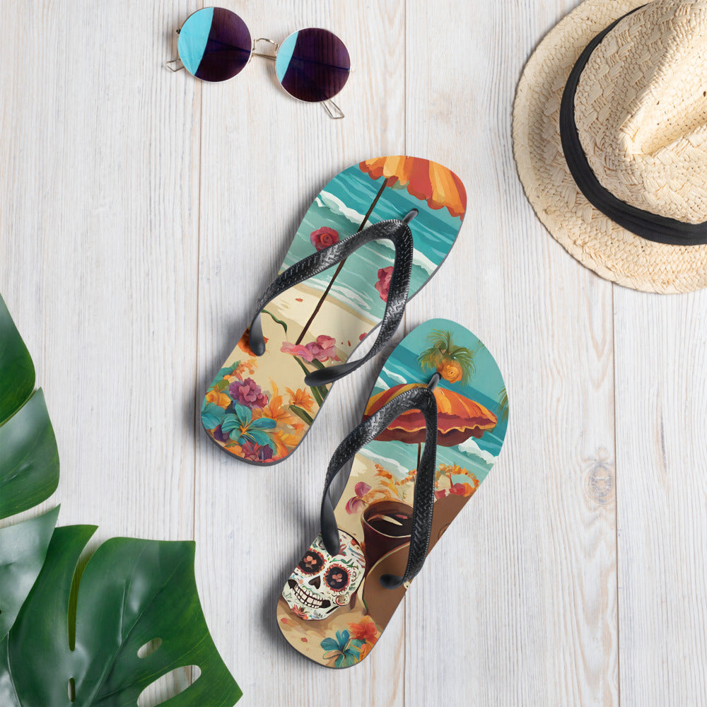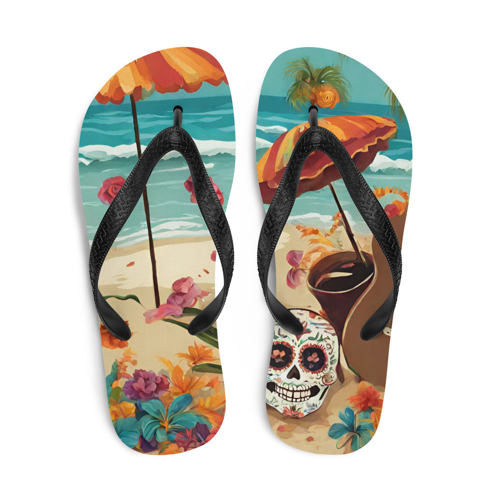 SUGAR SKULL ON THE SAND FLIP-FLOPS