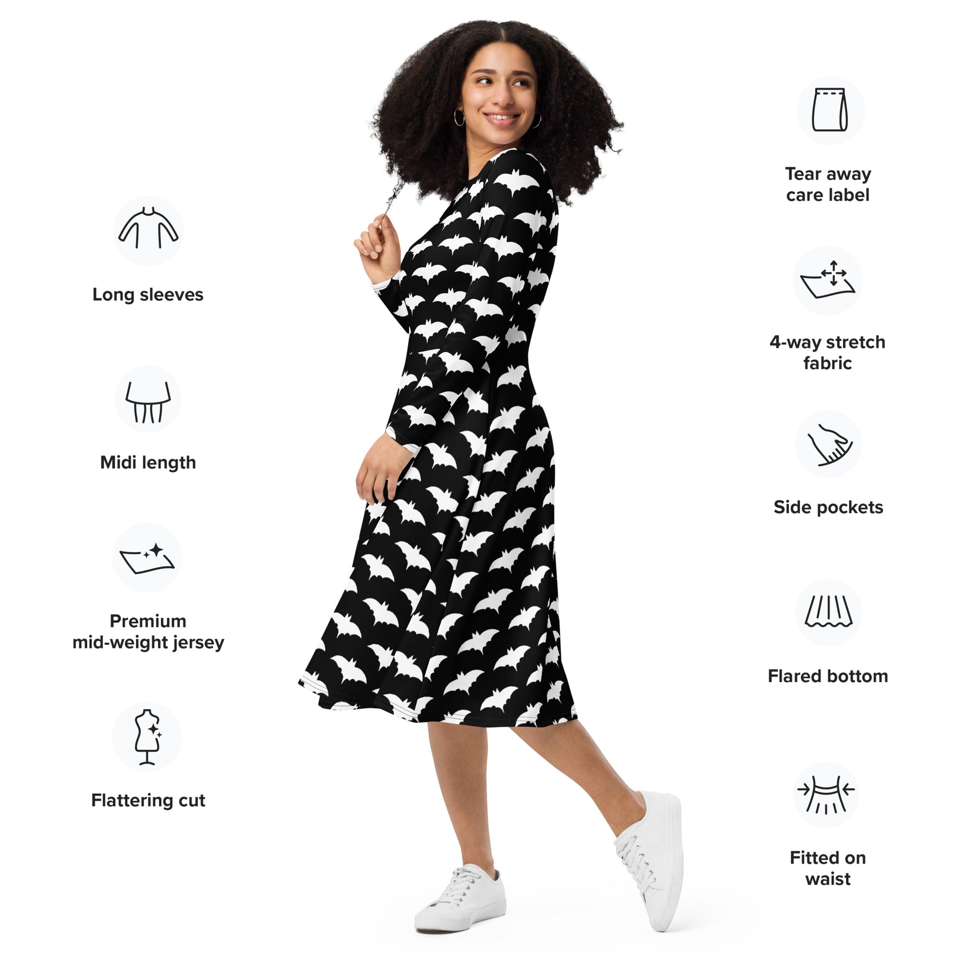 WHITE BAT LONG SLEEVE MIDI DRESS