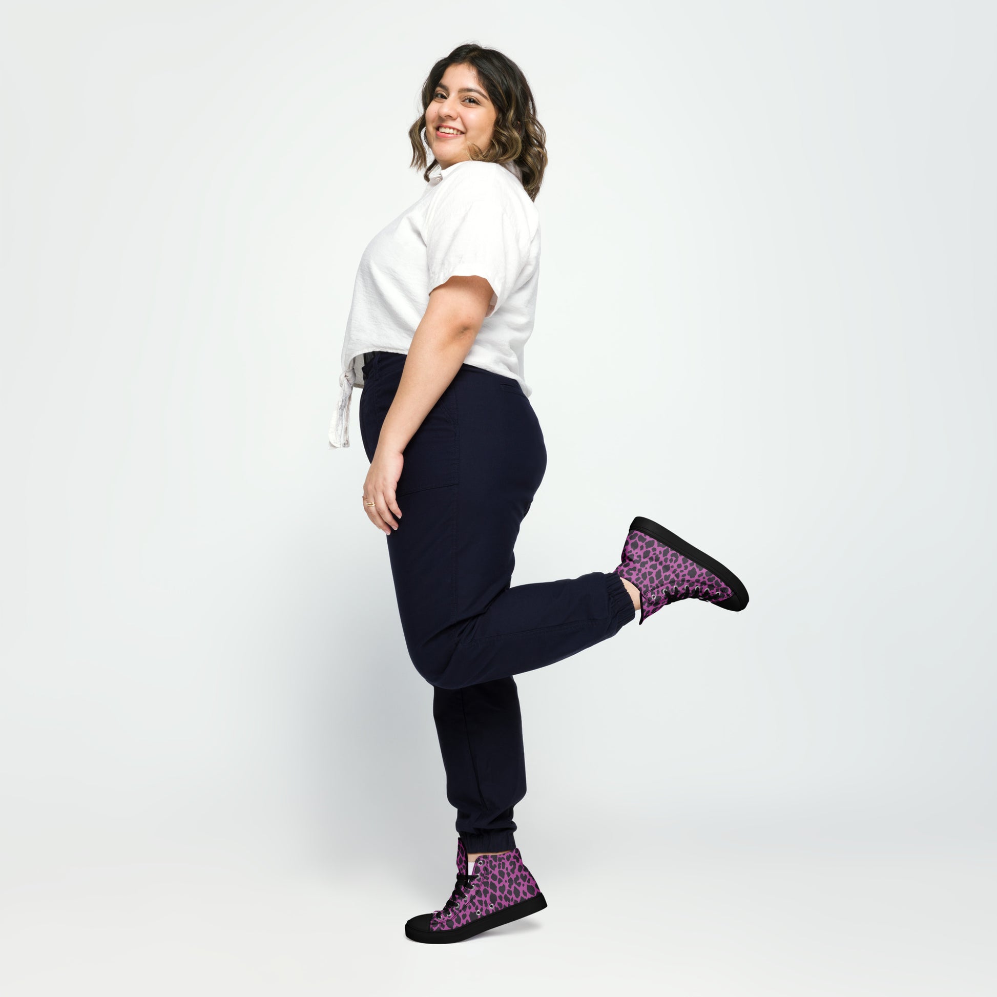 WOMEN'S PINK LEOPARD HIGH TOP CANVAS SHOES