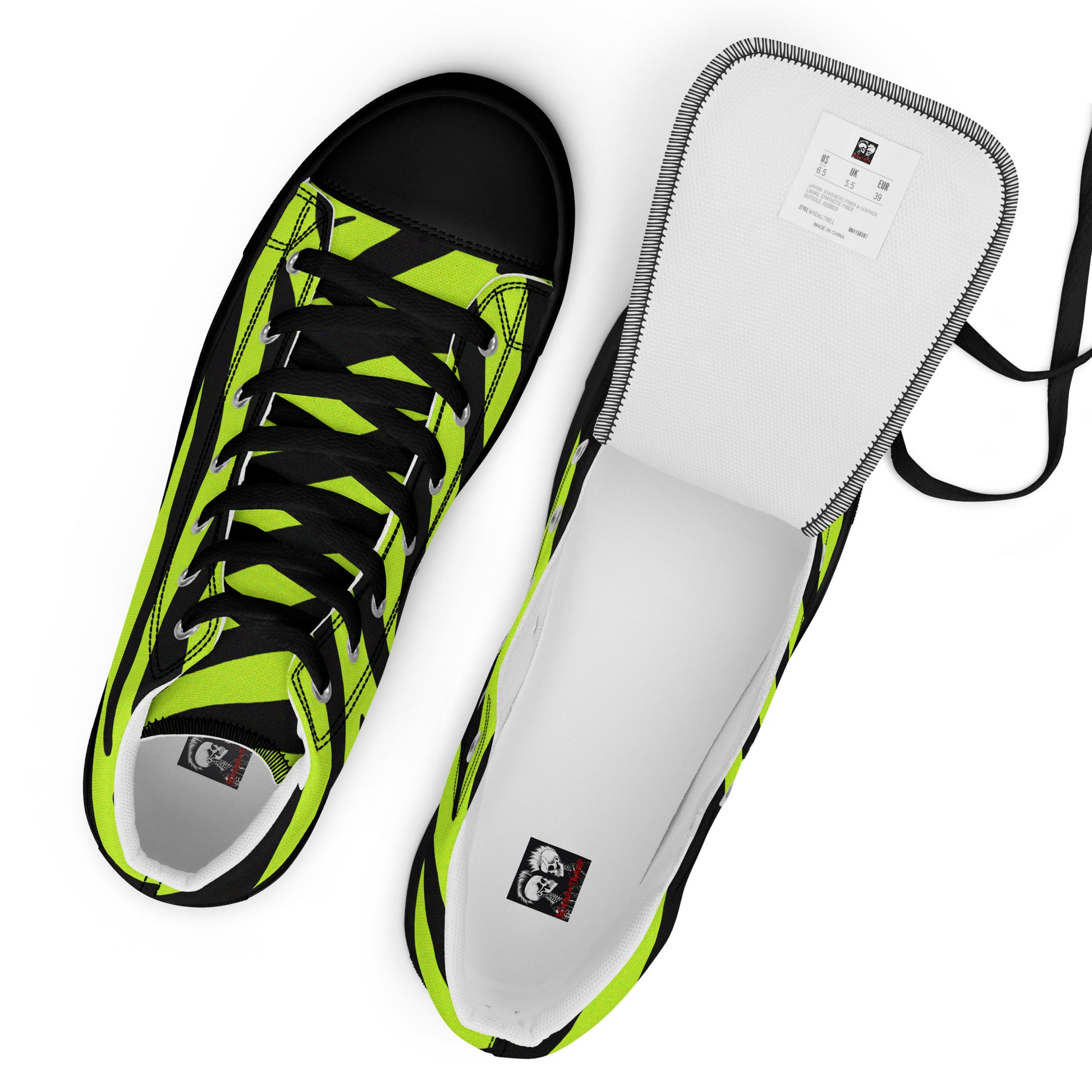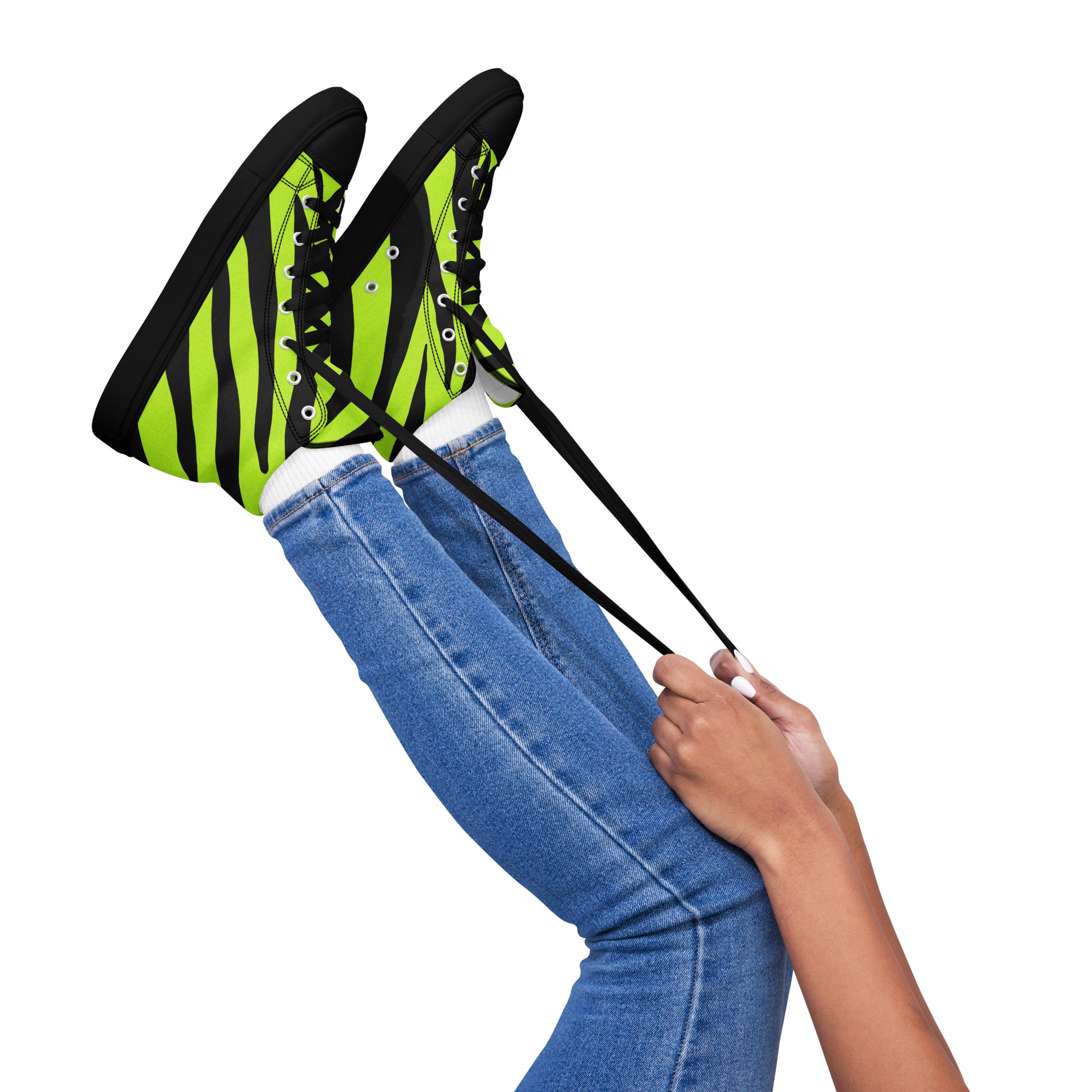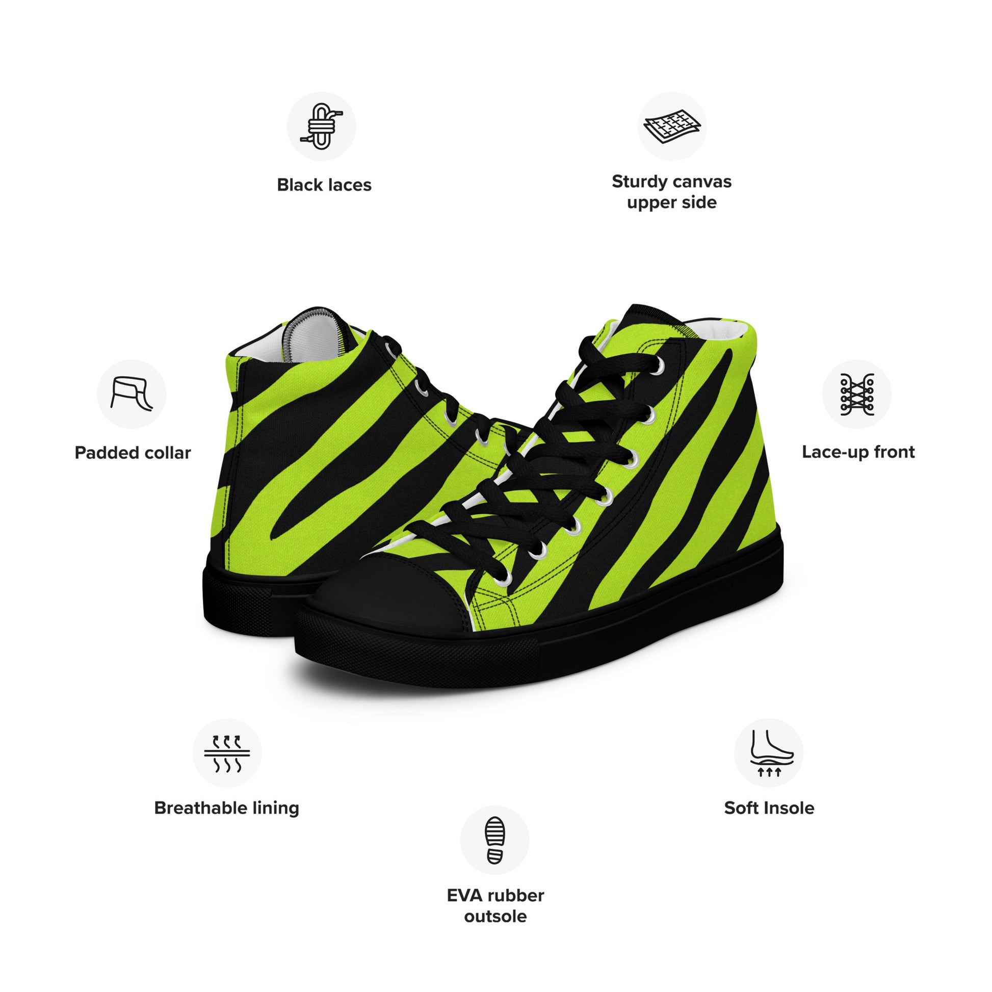 WOMEN'S YELLOW ZEBRA HIGH TOP CANVAS SHOES