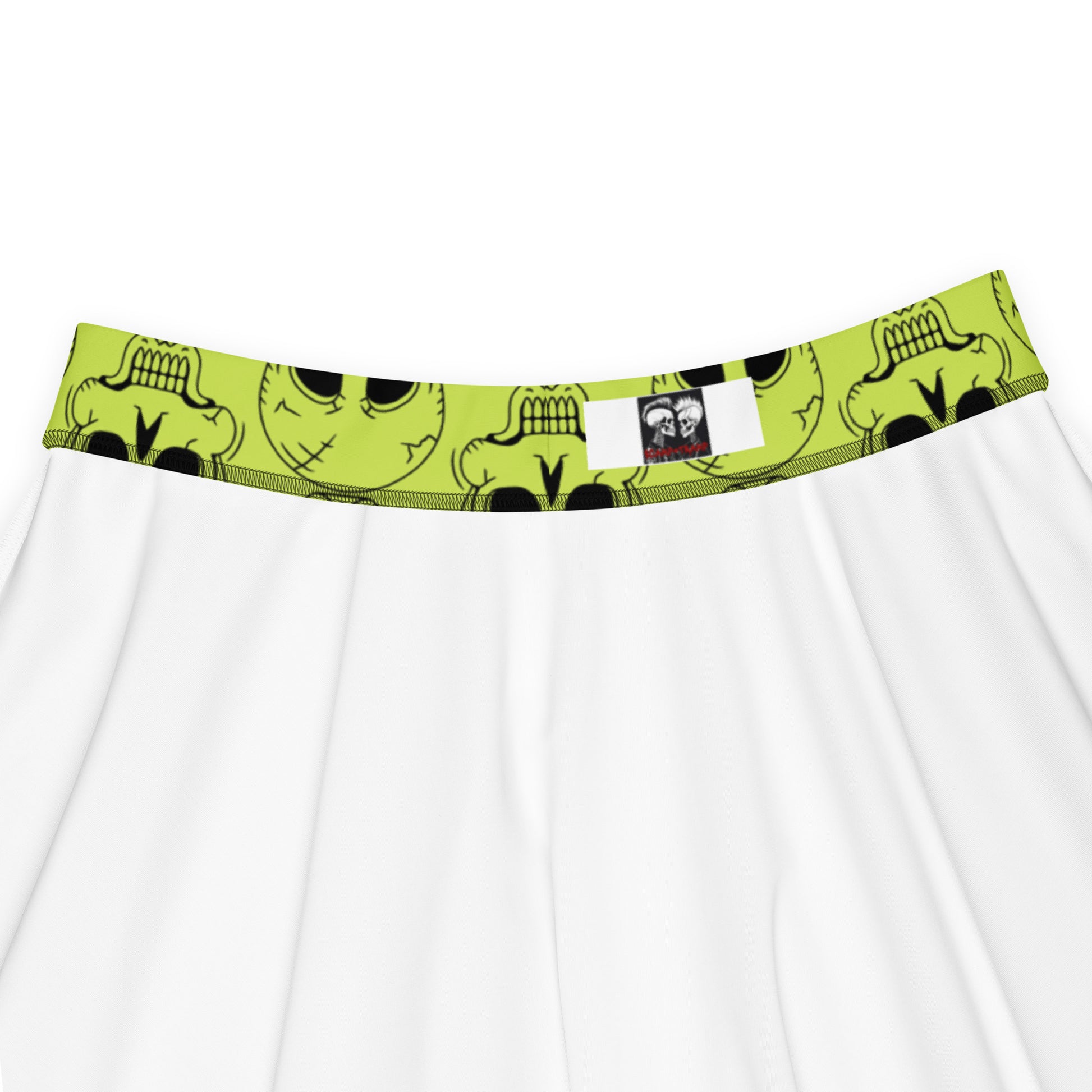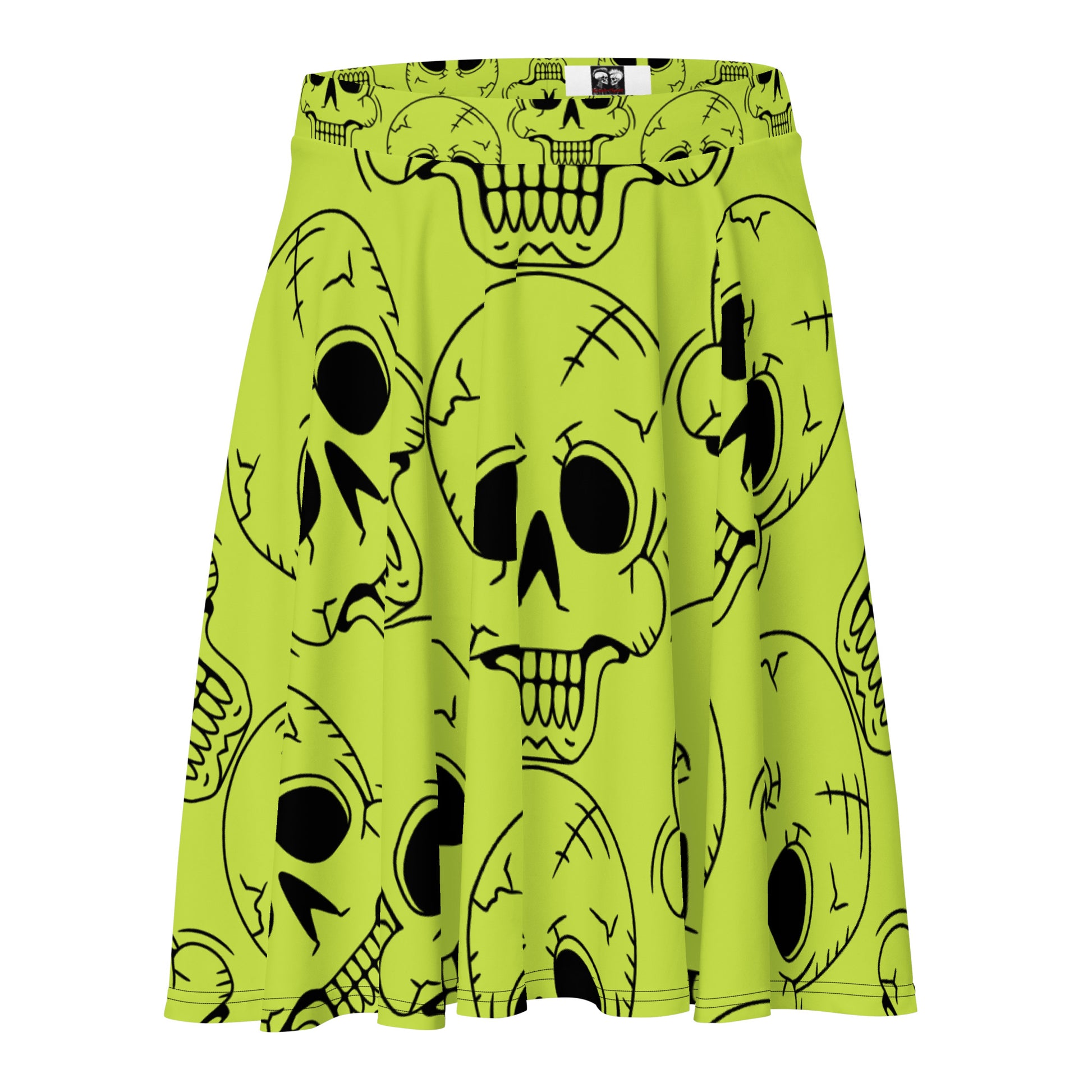 YELLOW LAUGHING SKULL FLARED MINI-SKIRT